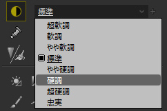 調子とは、硬い写真~柔らかい写真に仕上げるために写真のトーンを調整する機能です。